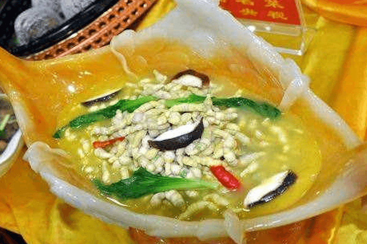 豆丹是一種吃豆葉的綠色蠕蟲,蘇北僅有,灌云特有,是一種重口味美食。上過央視的豆丹吃法很多,炸、炒、清燜、熬湯,夾兩塊放在口中,滿口生香,齒頰生津。