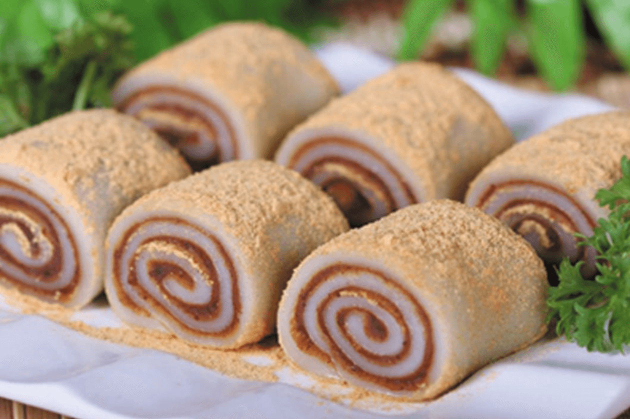 驢打滾是老北京和天津衛(wèi)傳統(tǒng)小吃之一。因其制作工序中撒上的黃豆面,猶如郊外野驢撒歡打滾時(shí)揚(yáng)起的陣陣黃土,因此而得名“驢打滾”。