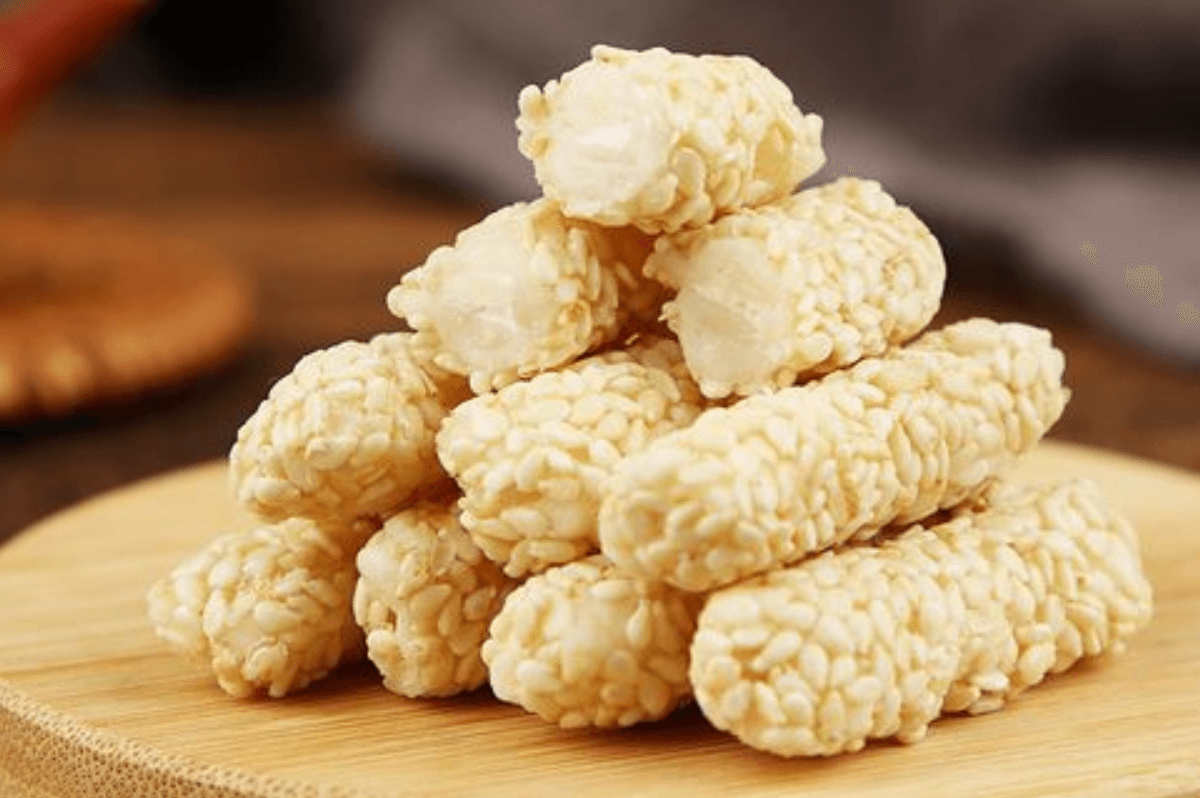 合肥寸金是以面粉、芝麻、白糖等主要原料制作的,因外觀色澤金黃,長約一寸所以得名“寸金”,吃起來香酥可口,老少皆宜,還具有桂花的香氣。