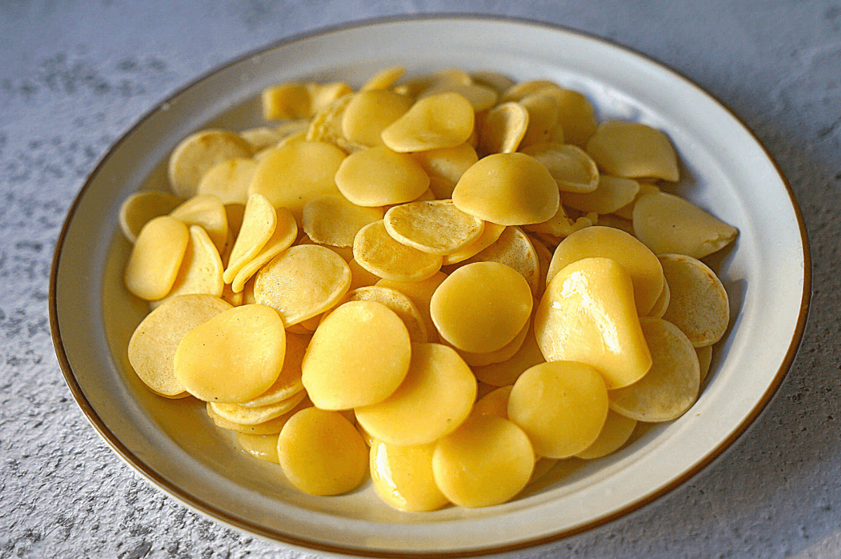 洛河豆餅是洛河一帶非常流行的一種美食小吃,是“淮河三豆”之一。主要是使用綠豆粉和面粉制作而成的銅錢大小的餅片,風(fēng)味十分獨(dú)特。
