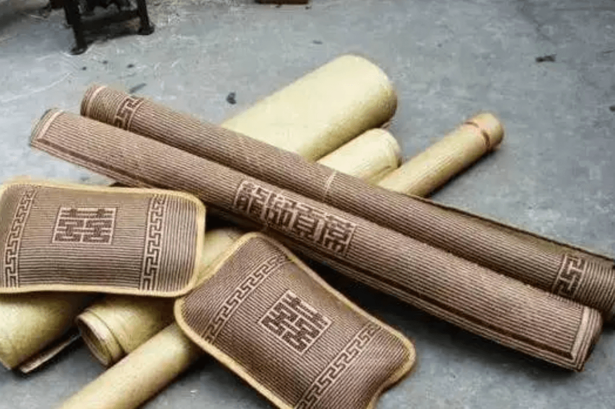 舒席又稱“龍舒貢席”,產(chǎn)于六安舒城、安慶潛山、懷寧等縣。舒席色澤鮮艷,柔軟光滑,折卷不斷。其特點(diǎn)涼爽消汗,不腐不蛀,經(jīng)久耐用。