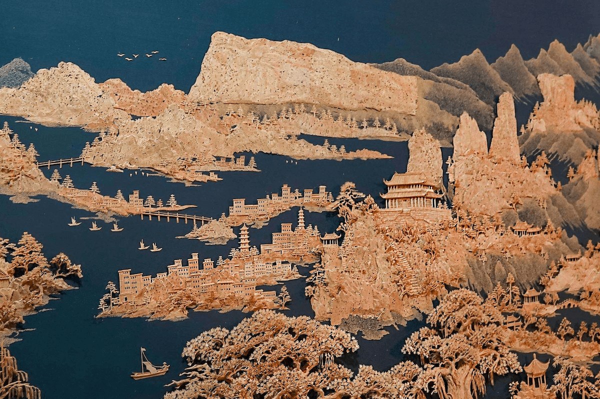 軟木畫(huà)是福州特產(chǎn)工藝品,主要使用手工雕刻而成,品種繁多,質(zhì)地輕軟,色調(diào)典雅,形象逼真,是當(dāng)?shù)赜忻墓に嚻泛吐糜渭o(jì)念品。