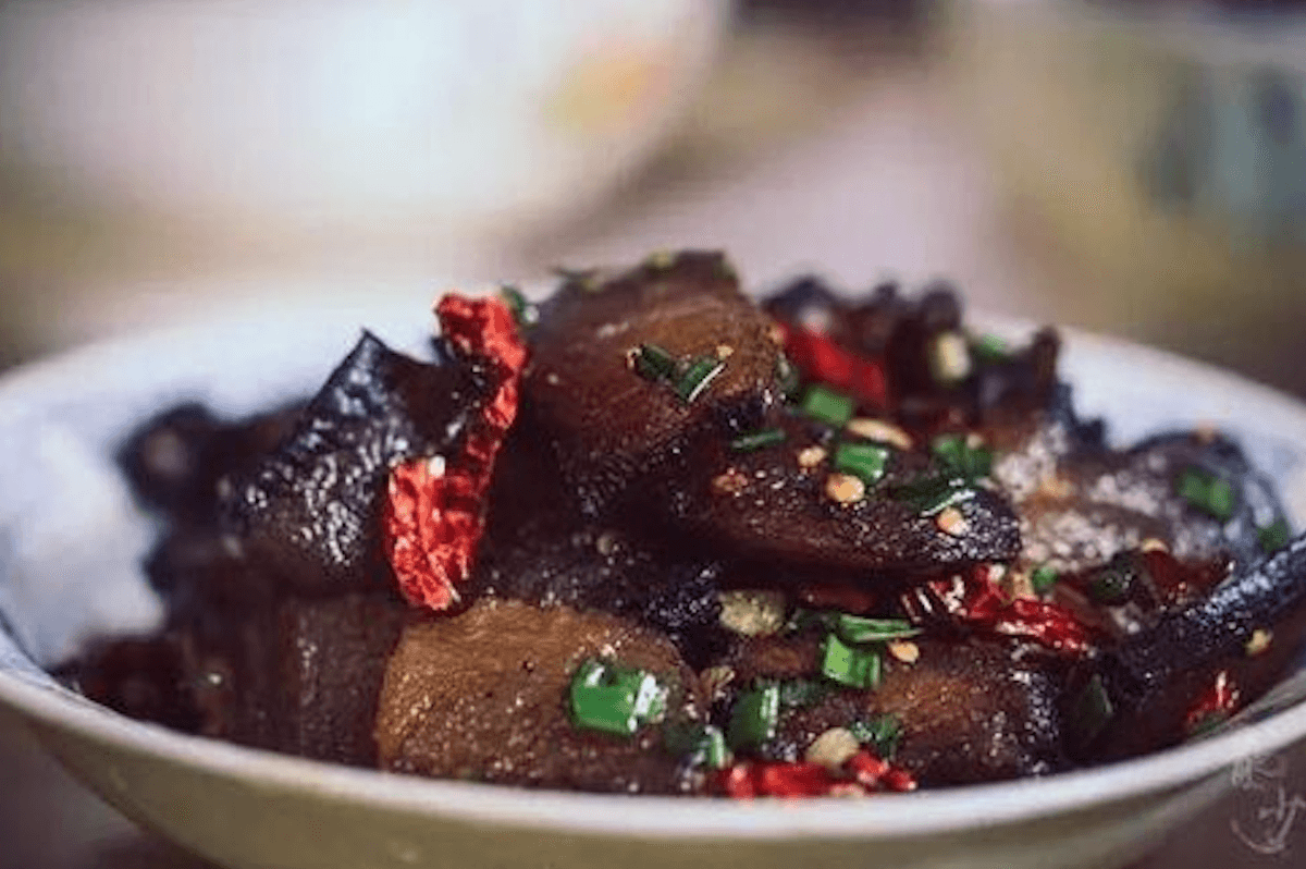 萍鄉(xiāng)煙熏肉是江西萍鄉(xiāng)市傳統(tǒng)的特色名菜。臘香撲鼻,芳香四溢,酥軟可口,滑而不膩,是佐酒下飯的佳品。是十大贛菜之一。